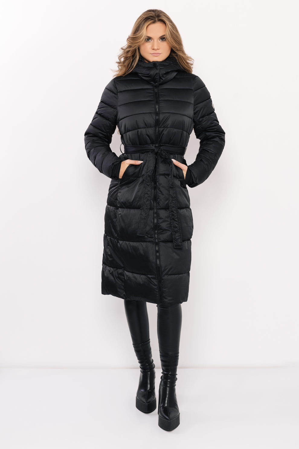 AMNESIA Blanka kabát štepovaný dlhý čierny